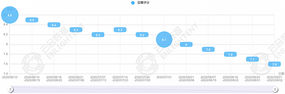 根据云合数据显示,《乘风破浪的姐姐》正片有效播放市场占有率及排名呈现出下降趋势,哪怕是正片更新之日,关注度也在打折扣;同样下滑的还有豆瓣评分,从前期开播的8.6到如今的7.6,从某种程度说明了节目在遭遇口碑危机。