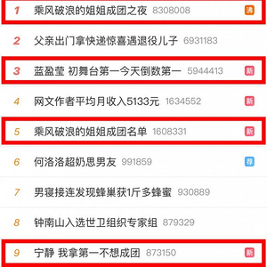 历时近三个月,《乘风破浪的姐姐》终于迎来了完结篇。毋庸置疑,《乘风破浪的姐姐》是今年热度最高的综艺之一。即使是稍显漫长的更新战线,也没有减少其一举一动的关注度。成团之夜,#蓝盈莹 初舞台第一今天倒数第一#、#张杰嗓子怎么了#、#阿朵鼓秀 春晚水准#等等话题随着节目的播出逐渐登上微博热搜。