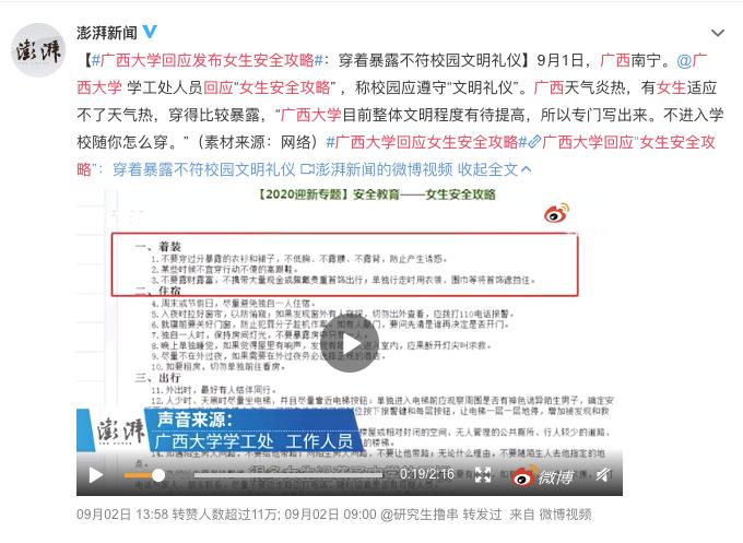 2020秋季迎新,广西大学发布《女生安全攻略》