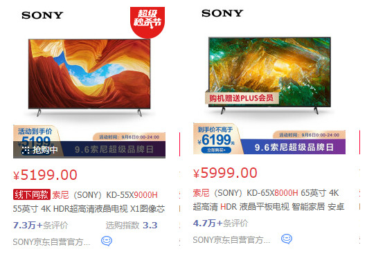 同价位还可以考虑索尼KD-65X8000H,虽然定位比9000系列低,但总体缩水不多,屏幕大了10吋。