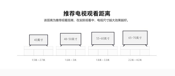 主流电视尺寸从55吋到85吋,我们能在网上看到很多所谓的尺寸距离公式、最佳观看距离,大家会认为总有一个不大不小的最佳尺寸,其实这是误区。