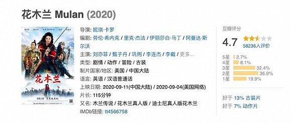 《花木兰》豆瓣评分4.7,被提前“狙击”的华人公主?