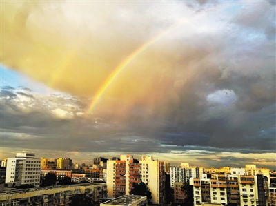 9月3日,北京喜现双彩虹美景在朋友圈刷屏。虽然彩虹是一种很常见的自然景象,但即便如此,每当雨后天空中升起美丽的彩虹时,仍能吸引大家的目光,而极为少见的双彩虹更是足够“吸睛”。