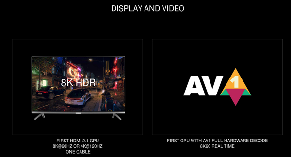 8K是NVIDIA这次升级的一个重要,除了游戏性能可以支持8K之外,接口及解码上也做了准备。
