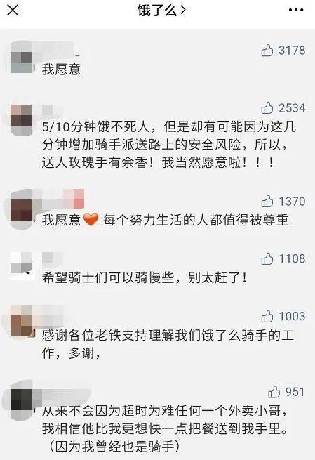 搜这一声明发布后,有人支持,也有人反对。支持者认为饿了么反应及时,这一改变非常人性化,愿意给骑手多一点时间。