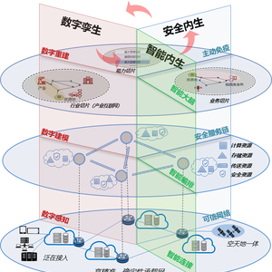 首先是数字孪生,利用数字孪生技术来构建数字孪生网络,通过仿真出来的物理网络端对端软件复本,实现连续的评估、预测和建议,以高效的、前瞻方式为实际运行的网络及其相关服务提供建模、验证和保障;其次是智能内生,全方位、立体化AI使能,构建统一的网络智能大脑,从智能连接、智能编排基础上,实现AI能力在网络中各层级的渗透,实现网络运营、网络服务等无所不在的泛在智能;最后是安全内生,包括智能主动防御、信息智能共识等,同时可以在现有的安全防控技术之上,将数字孪生网络与人工智能相结合,生成“网络疫苗”,预先获得“未知”攻击的防御方法,为受保护网络提供自适应防护能力。