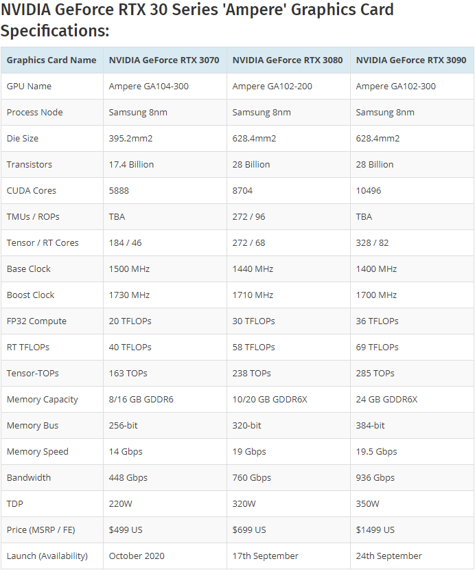最后,英伟达 GeForce RTX 3090 将于 2020 年 9 月 24 日向消费者推出,公版参考报价为 1499 美元。