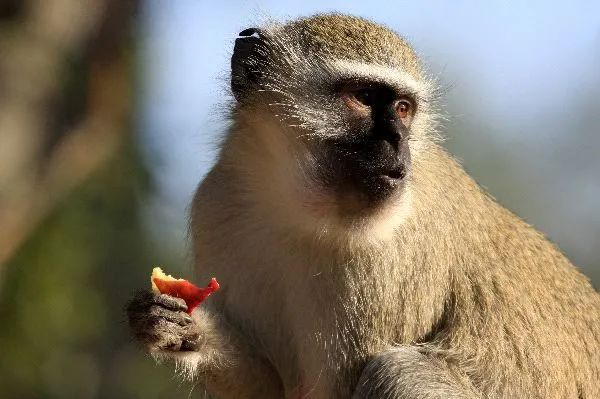 正在吃红色果实的黑长尾猴