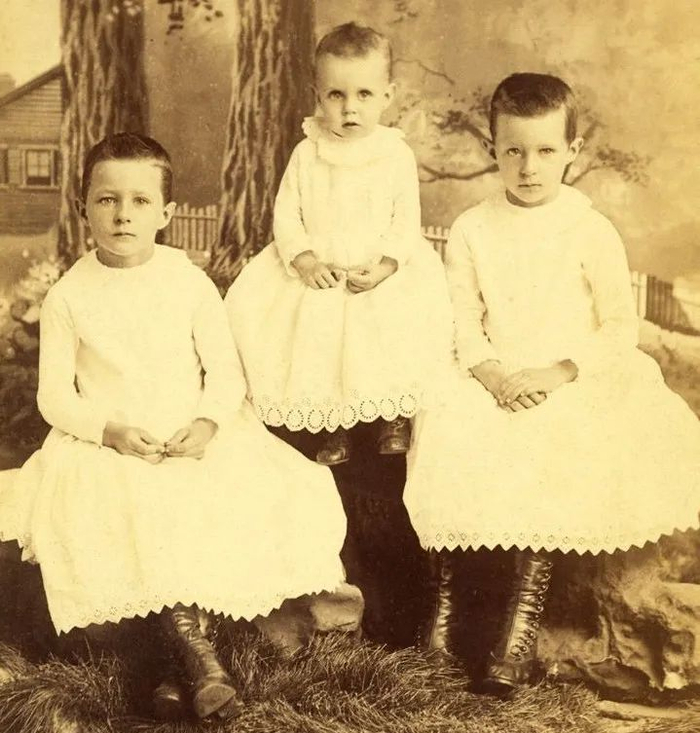 这不是罗斯福性别反转,而是那个年代的常态。实际上二战以前,美国的主流还是给小孩子统一穿着白色的连衣裙,不论男女,裙子方便更换尿布,而白色方便变脏后漂白。