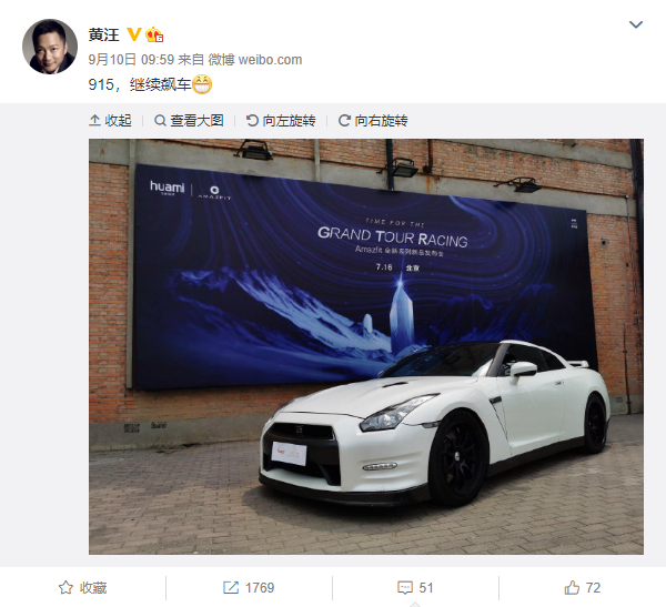 日前,华米科技创始人黄汪在个人微博预告称:“915,继续飙车。”