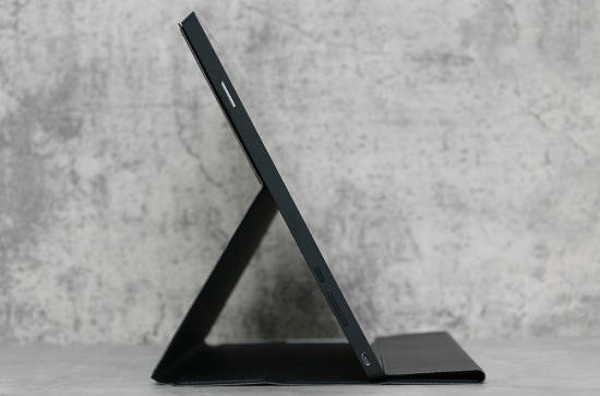 作为一款便携显示器,轻便设计自然更受关注。该机机身厚度仅9mm,整机重量不到1kg,这在同类15.6英寸产品中非常难得。即使算上皮套的重量,放入背包里也不会觉得笨重,相比Macbook Air的重量还要轻些。