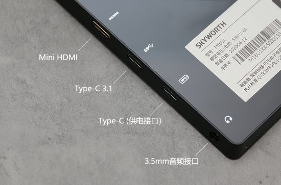 该显示器提供了多种接口来满足日常办公娱乐需求,Type-C接口满足各种手机、电脑终端设备连接。同时该显示器也配有Micro USB接口,以满足老旧终端设备的接入,设计非常贴心。
