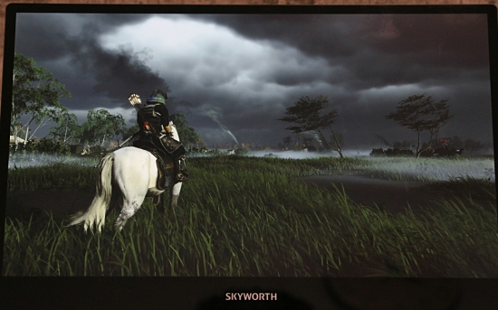 该显示器搭载Adaptive Sync技术,同步显卡与显示器信号传输频率,消除快速运动产生的撕裂卡顿现象,让游戏视觉体验更加顺畅。从上面动态gif图中,可以看到策马奔腾的流畅感。
