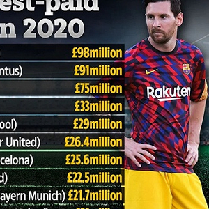 2020年《福布斯》足球运动员收入前十榜单: