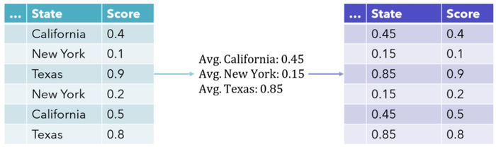 留一法(Leave-one-out)编码试图通过计算平均值(不包括当前行值)来弥补对 y 变量的依赖以及值的多样性。这使异常值的影响趋于平稳,并创建更多样化的编码值。