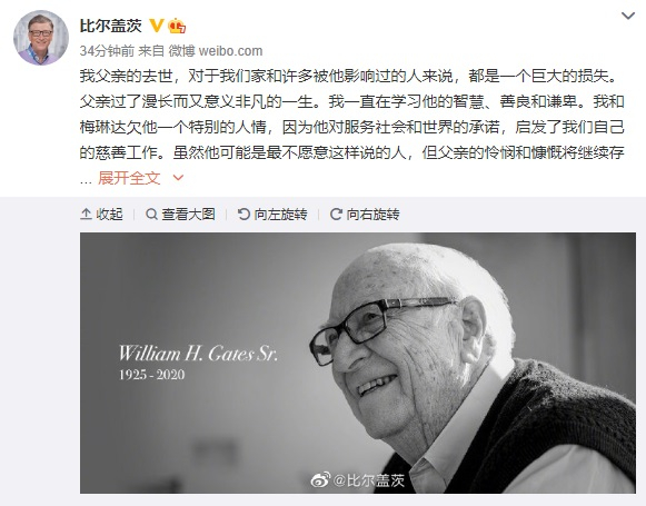 比尔盖茨:父亲去世是一个巨大的损失,他启发了我们的慈善工作