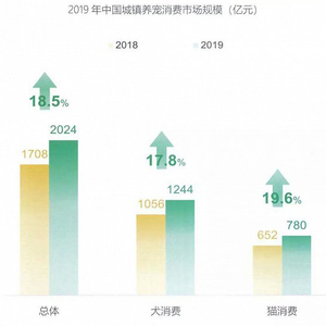 数据显示,目前中国宠物市场的规模超2000亿,年平均增速近20%,已经成为全球第二大的宠物市场。对比发达国家的宠物渗透率,美国为68%,加拿大为52%,澳大利亚为57%,而目前中国宠物的渗透率仅为22%。换句话来说,中国的宠物市场还有很长的路要走。