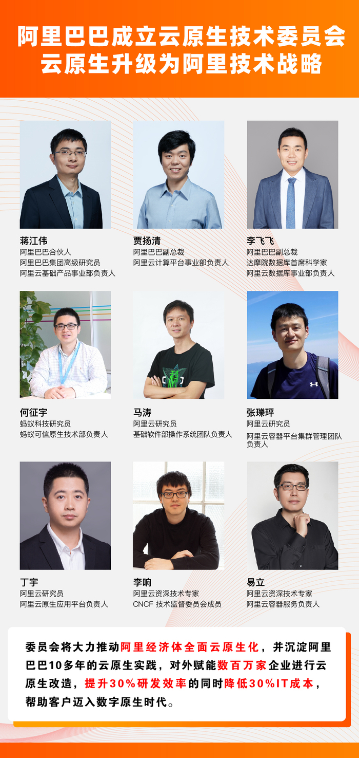 蒋江伟表示,委员会将大力推动阿里经济体全面云原生化,并沉淀阿里巴巴10多年的云原生实践,对外赋能数百万家企业进行云原生改造,提升30%研发效率的同时降低30%IT成本,帮助客户迈入数字原生时代。