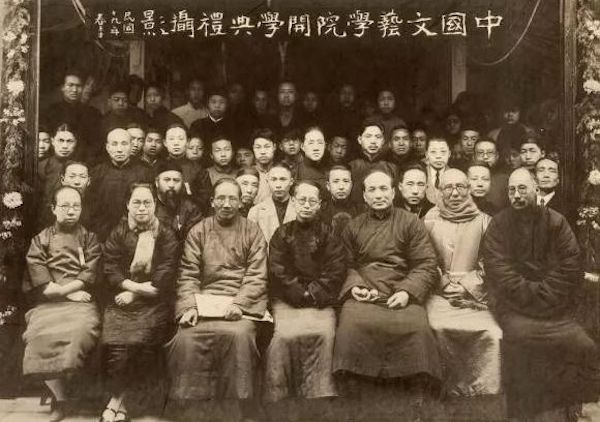 第一排左三蔡元培、左四叶恭绰、右一黄宾虹、第三排右二郑午昌1938年日寇侵华,尤无曲逃难到上海,结识严惠宇,得其引荐,拜陈半丁为师。尤无曲去北平从陈半丁学画,期间有缘结识蒋兆和、萧谦中、王雪涛等诸家,开拓了艺术视野。1941年11月,尤无曲在中山公园水榭举办个人画展,齐白石为鼓励尤无曲,买下了画展最贵的作品《纤夫图》。齐白石还为尤无曲订润例,写下“下笔苍劲,有明人风”的评语。北平画展是尤无曲融合“海派、京派”绘画艺术,初具个人面貌的展示,在尤无曲艺术生涯中,具有标志性的意义。