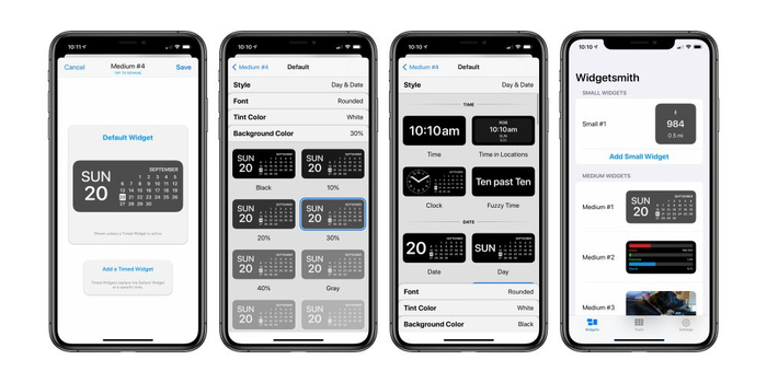 这款 Widgetsmith App 可选择三款小部件尺寸,每个小部件都可以显示各种信息,并可以使用不同的字体样式/颜色,色调和小组件背景颜色进行自定义。