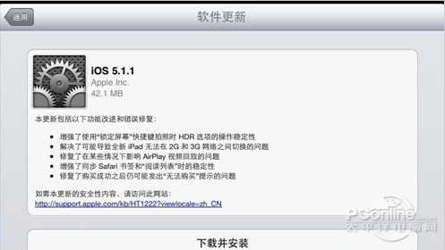 方法3、打开iOS设备,进入设置 - 通用 - 关于本机 - 软件更新,根据提示即可完成iOS5.1.1升级(友情提示:本方法为OTA无线升级,建议在Wifi网络下进行)。