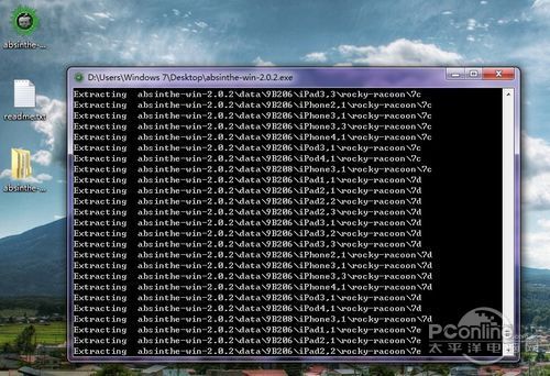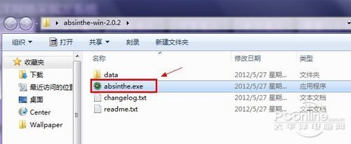点击文件夹内的“absinthe.exe”文件,即可启动iOS5.1.1完美越狱程序。