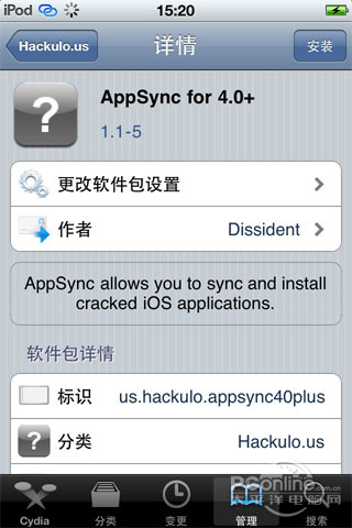 当然,越狱成功后,我们还需要使用 Cydia 安装 AppSync 补丁才可以肆无忌惮的安装海量破解游戏和软件的。