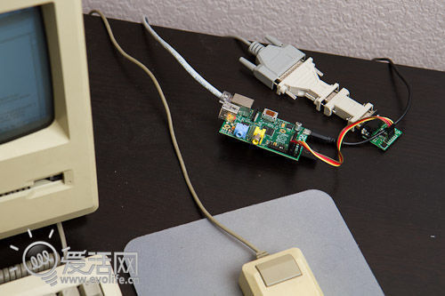 硬件方面就稍加麻烦,Macintosh Plus没有以太网接口,更别提什么WIFI和USB了。Jeff不得不对串口进行了不小的改造,通过一些串行适配器和电压转换器将其与Macintosh Plus的串口相连,才成功的把网线接入电脑。