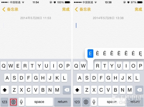在iPhone手机的虚拟按键中,我们可以输入正常的字母,也可以输入字母的特殊符号,这对于某些用户来说还是用处很大的。具体的操作方法其实 非常点击,我们只需要点击自带输入法左下角的“小地球”图标虚拟键盘调至“English(us)输入法”,然后长按字母就可以看到字母上方显示的字母特 殊字符我们从中选择需要输入的特殊字符即可。