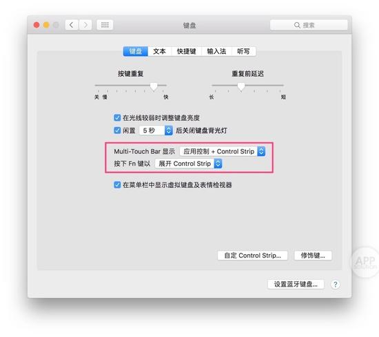 在默认的情况下,按 Fn 键就是展开传统的 F1-F12,但如果这些功能键(Function Key)对你没用的话,你可以将‘按下 Fn 键’设置成‘展开 Control Strip’。