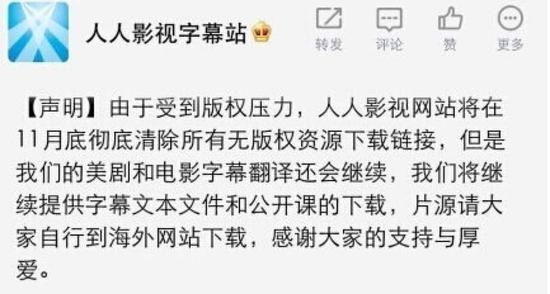 在目前的各大主流视频平台及网络下载网站中,存在的版权问题早已不是“一朝一夕”。据了解,较早前PPS的美剧栏目、人人影视、搜狐等视频网站都曾面临“暂时调整”。
