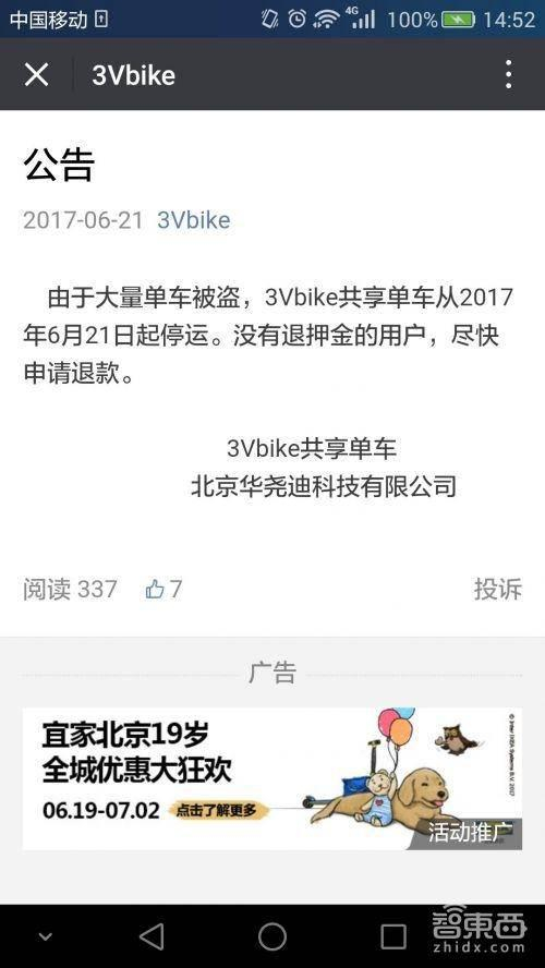 另一边,在南京市场上挣扎了近8个月后,町町单车运营方人去楼空。如果此前悟空单车和3Vbike的倒闭还有些“样本不足”的疑虑,那仅仅一个半月后第三家折戟的共享单车企业,则可以说为一出既定的悲剧拉开了大幕。