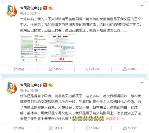 与《热血长安》知错就改的态度不同,大风刮过曾在微博《关于某事,希望这是最后一次说起……》一文中提到,《三生三世》并没有抄多少,但作者大张旗鼓“致敬”且将作品寄给自己的行为实在让人“无奈”。