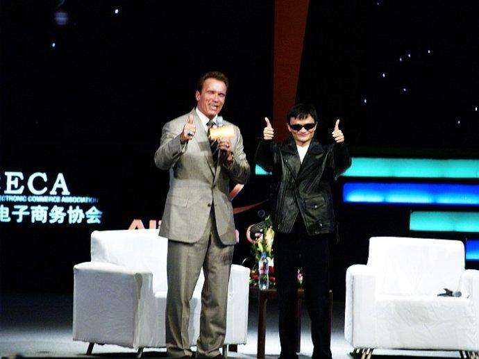 马云张罗的“西湖论剑”办了六场,打着“江湖会友”的旗号,马云的朋友圈越来越热闹,到第五届,前美国总统比尔·克林顿来了,雅虎杨致远来了,到第六届,施瓦辛格、时任EBAY CEO 约翰·多纳霍也来了——迷弟马越发长袖善舞。
