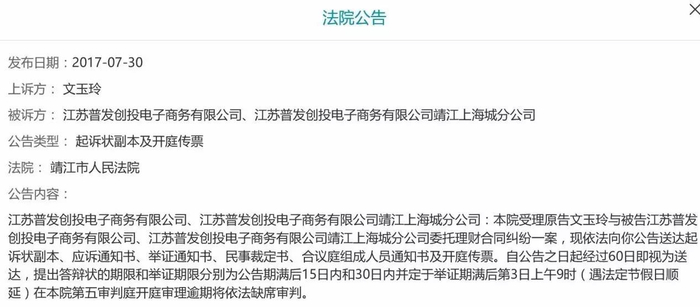 再顺着这个公司的页面往下看,在“法院公告”栏里有4项公告,点开详情一看,全是理财纠纷啊。