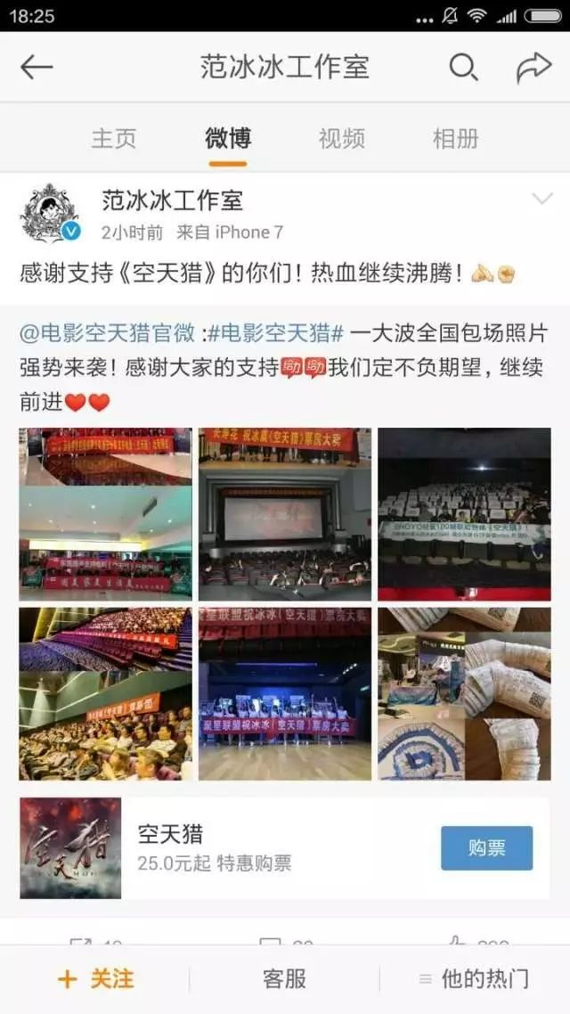 这显然是一个低成本的推广行为。根据《三声》(微信ID:tosansheng)的了解,北京地区影院小厅大约在80个座位左右,每张票大约在50-60元之间,其他中小城市的价格相对更为便宜。也就是说,一起凑齐最低4000元,代理们就可以给她们的代言人范冰冰打call一次,并且为自己的团队进行一次宣传。