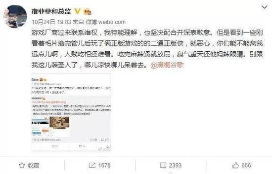 这句话迅速招来了一次“正面怼”,3DM前总监宿菲菲在微博上以激烈的言辞怼了回去。