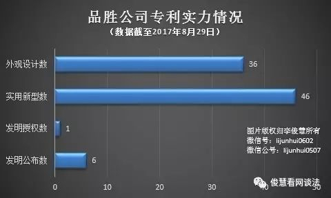 来自国家知识产权局网站的统计数据显示,截至2017年8月29日,品胜公司在国内的发明公布数是6件,发明授权数是1件,实用新型数是46件,外观设计数是36件。