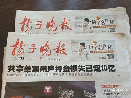 作为受伤的另一方,用户则损失了押金。就在昨天,扬子晚报头条刊载新华社的消息称,根据芝麻信用提供的数据,用户押金损失已经超过10亿元。虽然金额计算的详细信息没有公布,但也说明了共享单车押金问题严重程度已经远超人们预期。