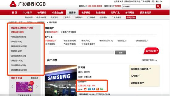 比如在广发信用卡的官网上显示,其已拓展了68家商户,涉及9大场景。