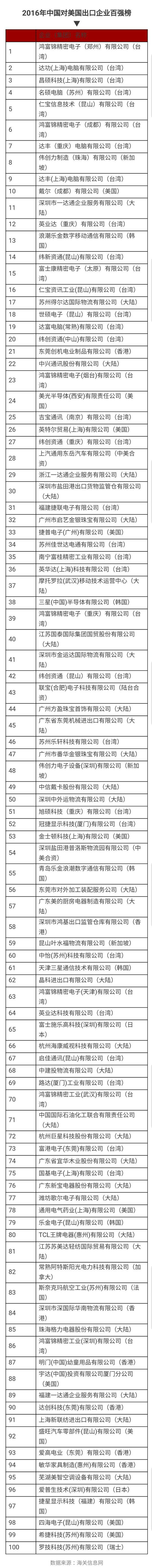 如果上面这份百强榜一直是外资唱主角,美国可能不会这么在意。美国担心的是,中国企业升级成功,在对美出口的榜单里不断上位,把外资企业挤出。