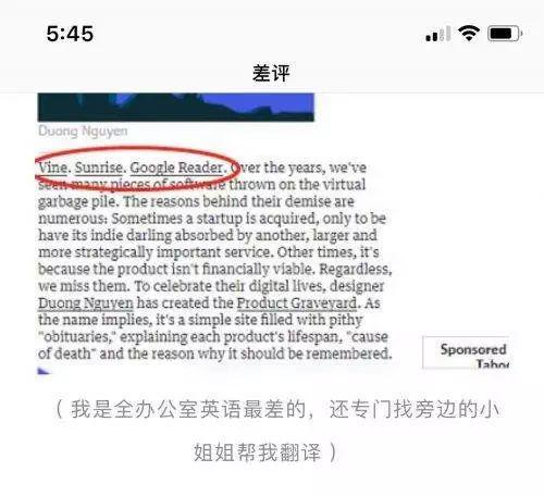 再比如,差评方面这篇文章的作者在昨晚的回击文章里指出,“我是全办公室英语最差的,还专门找旁边的小姐姐帮我翻译”: