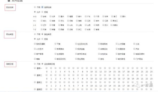 另外,根据具体投放的产品,也为了能更加精准的投放,这里面还可以进行投放区域的选择、投放网站的类型、以及投放的时间周期。