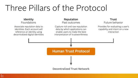 而如果以去中心化的区块链为基础,在其上建立人类信任协议(Human Trust Protocol, HTP),将信任与信誉以具体的雇用行为,“信任股份” (trust stakes), 和“结果输出”来展示,那么陌生人之间的交易就会变得更加可靠,交易双方的隐私也不会被轻易泄露。