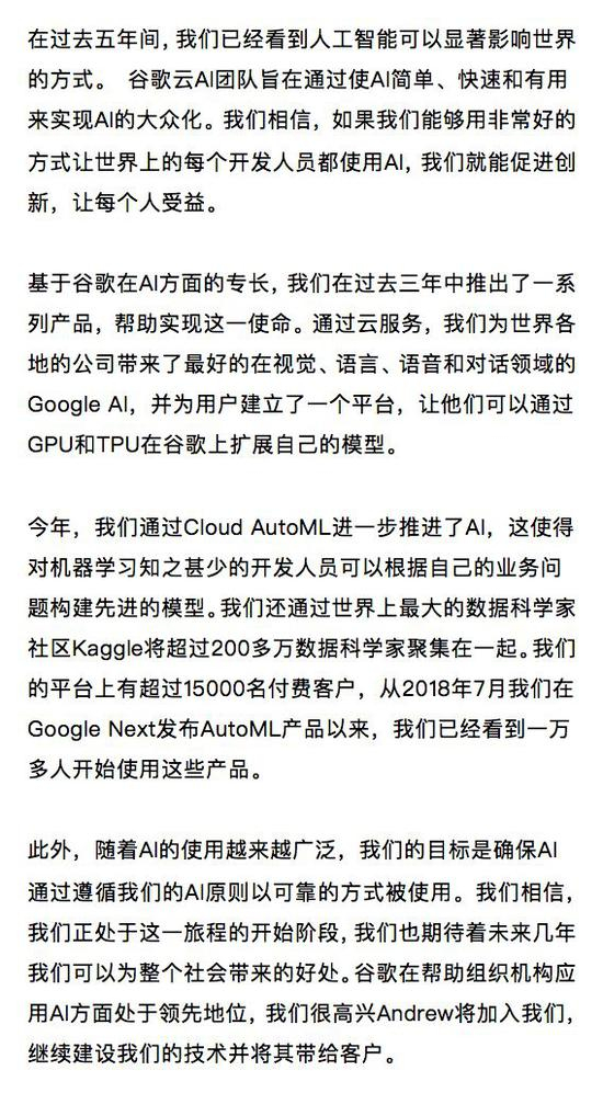 对于自己离开谷歌回归斯坦佛的消息,李飞飞说,“我在产业工作所学到的知识将进一步加强学术界和产业界的合作,我期待与Andrew和谷歌云AI团队继续密切合作。”