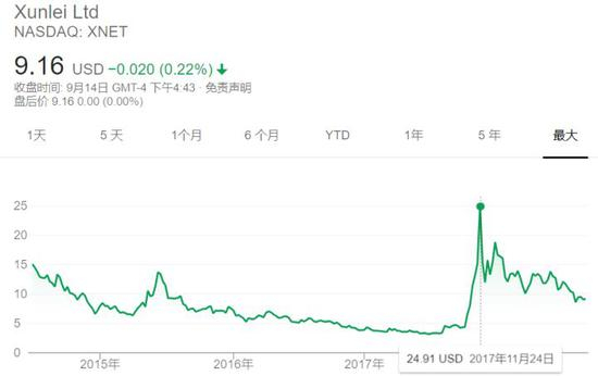 做下载起家的美股上市公司迅雷,去年11月经历过股价逼近25美元的高光时刻之后,一路下跌。