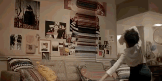 女主角从一天疲惫的工作中回到家,
