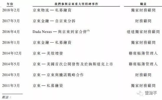 这些重要交易包括京东集团私募融资,京东与腾讯战略合作、京东美国上市、京东金融私募融资、达达与京东到家合并、京东金融分拆、京东物流的融资。
