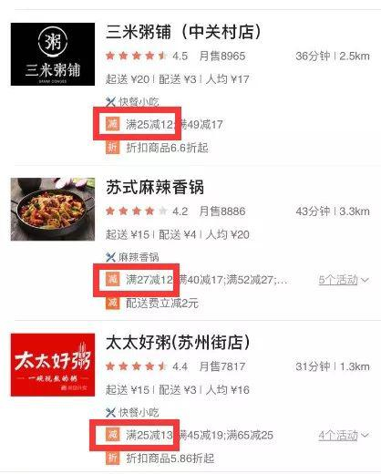 注:在美团和饿了么,折扣商品不能与满减共享。