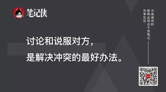 同时,永远要做出妥协,不能说自己永远是对的,或者对方都是对的,而是我们各自都有对的,然后做出一些折衷。要通过更多的对话来赢得对方,要有更多的谈判,以避免冲突。